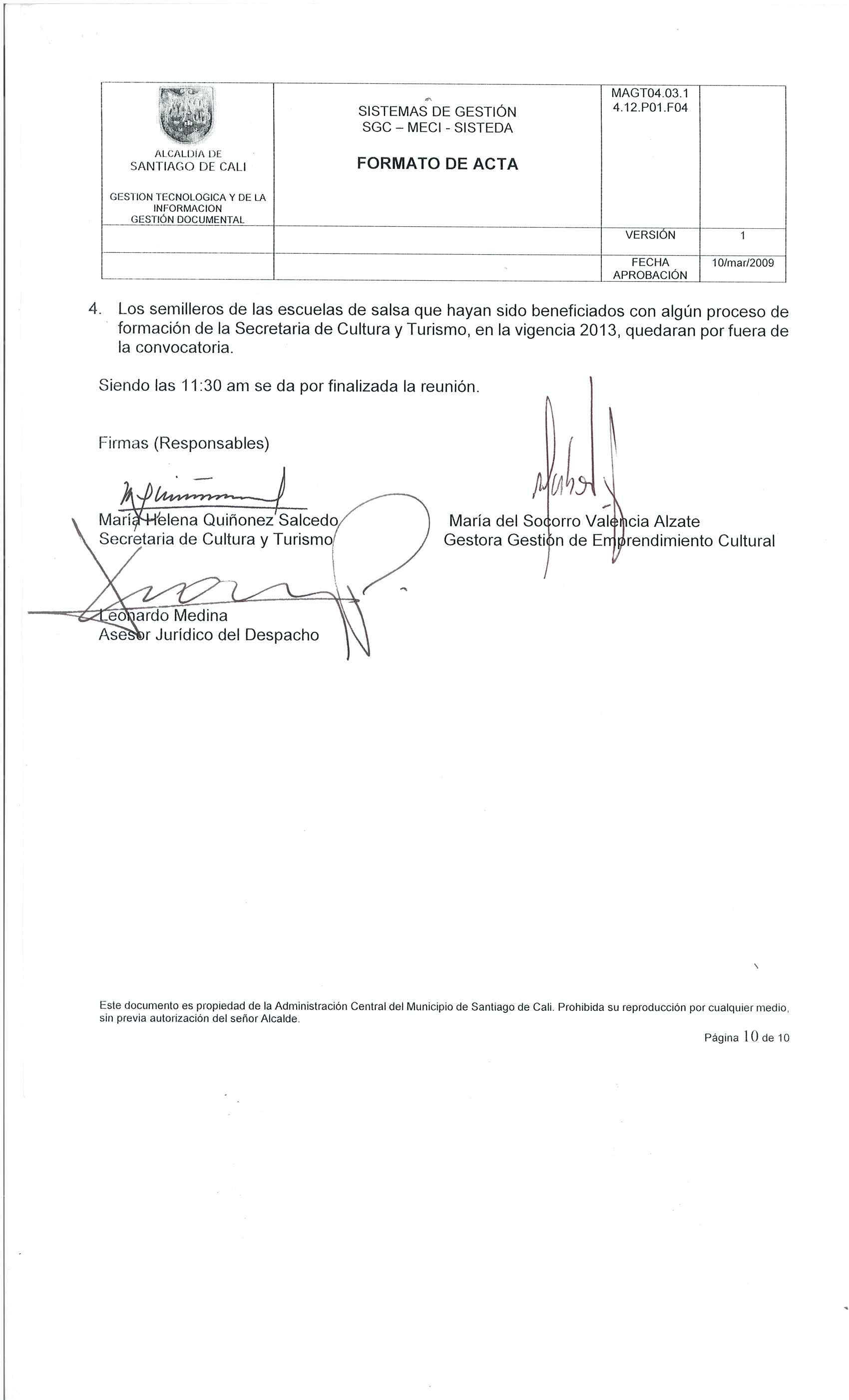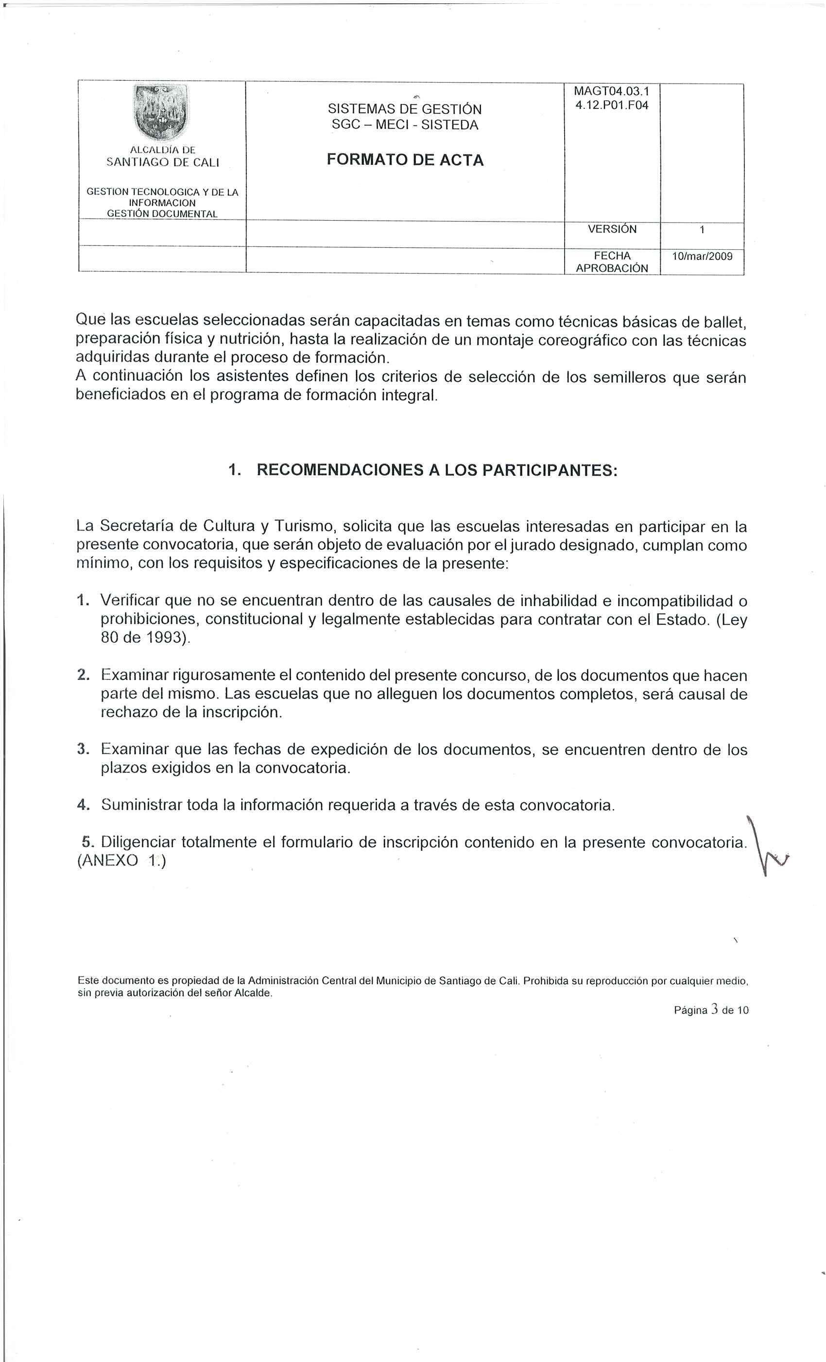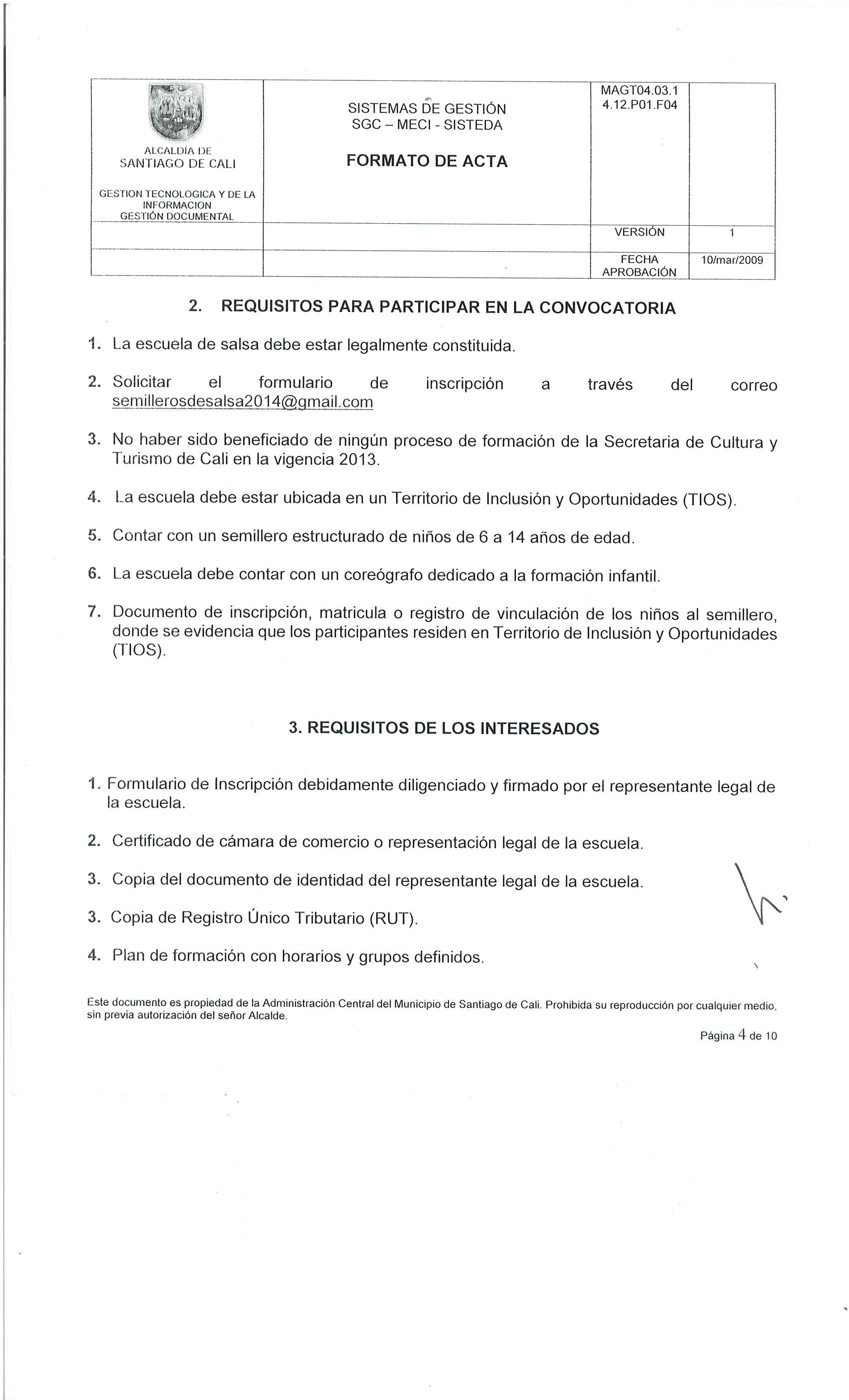 • No haber sido beneficiado por ningún proceso de formación en la Secretaría de Cultura y Turismo de Cali en la vigencia 2013.