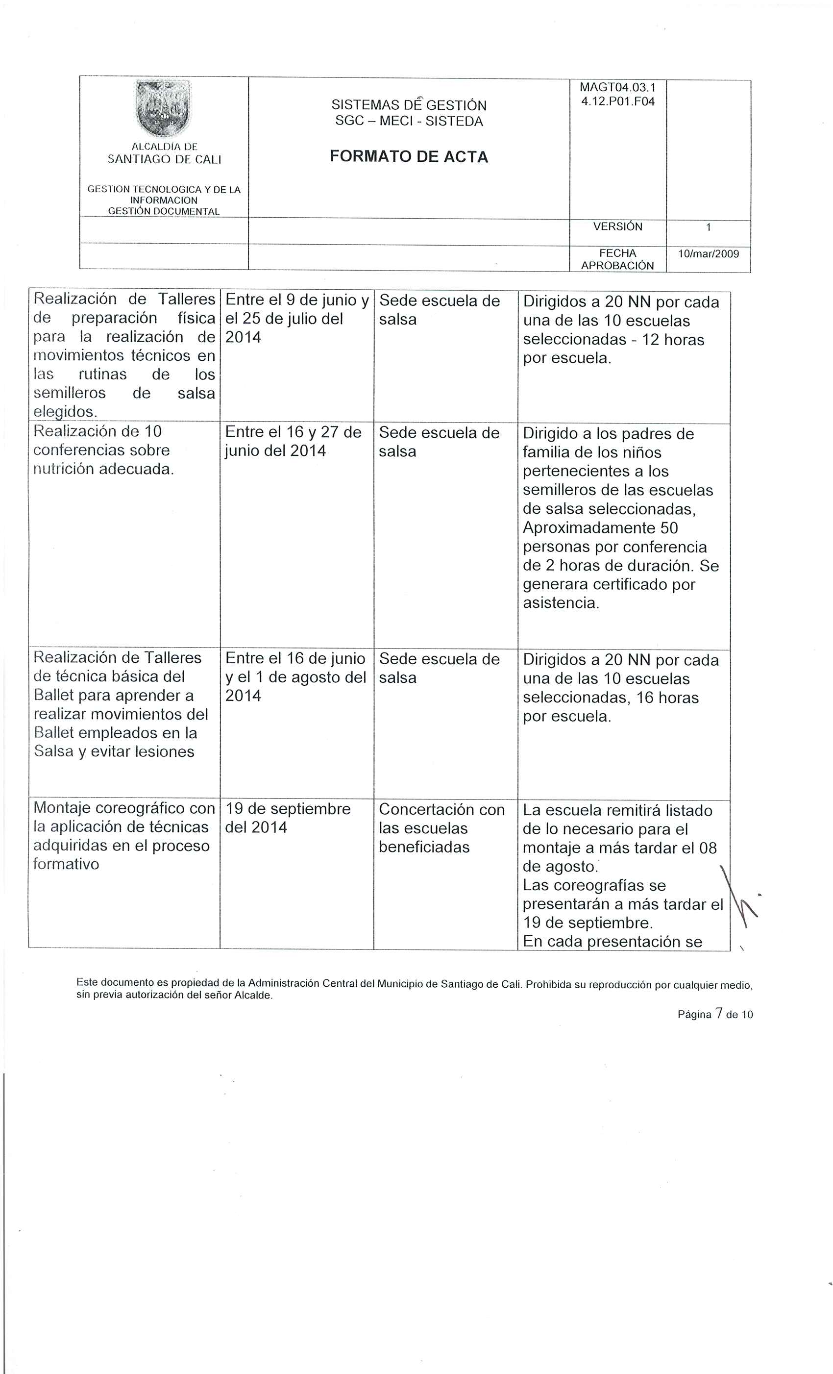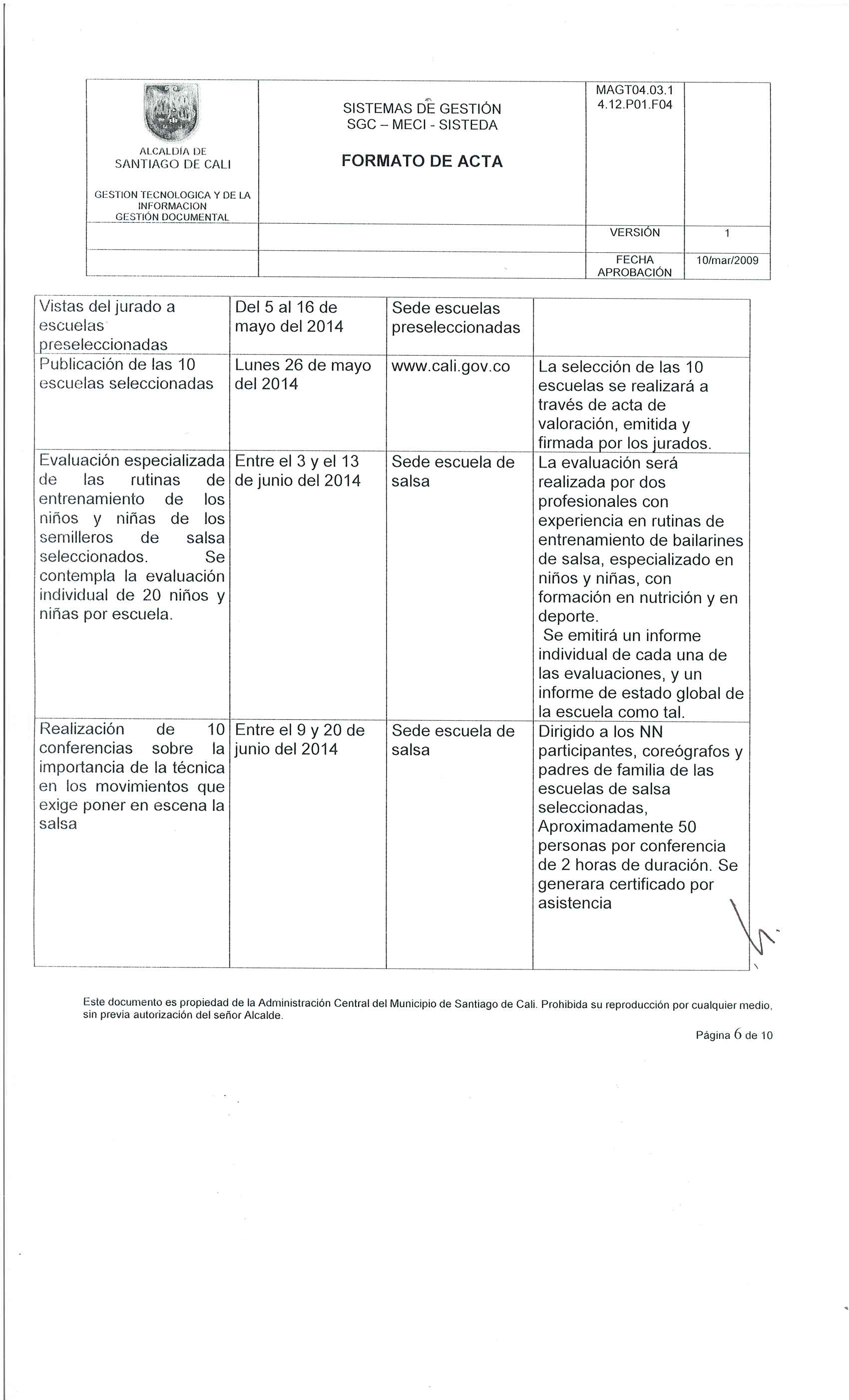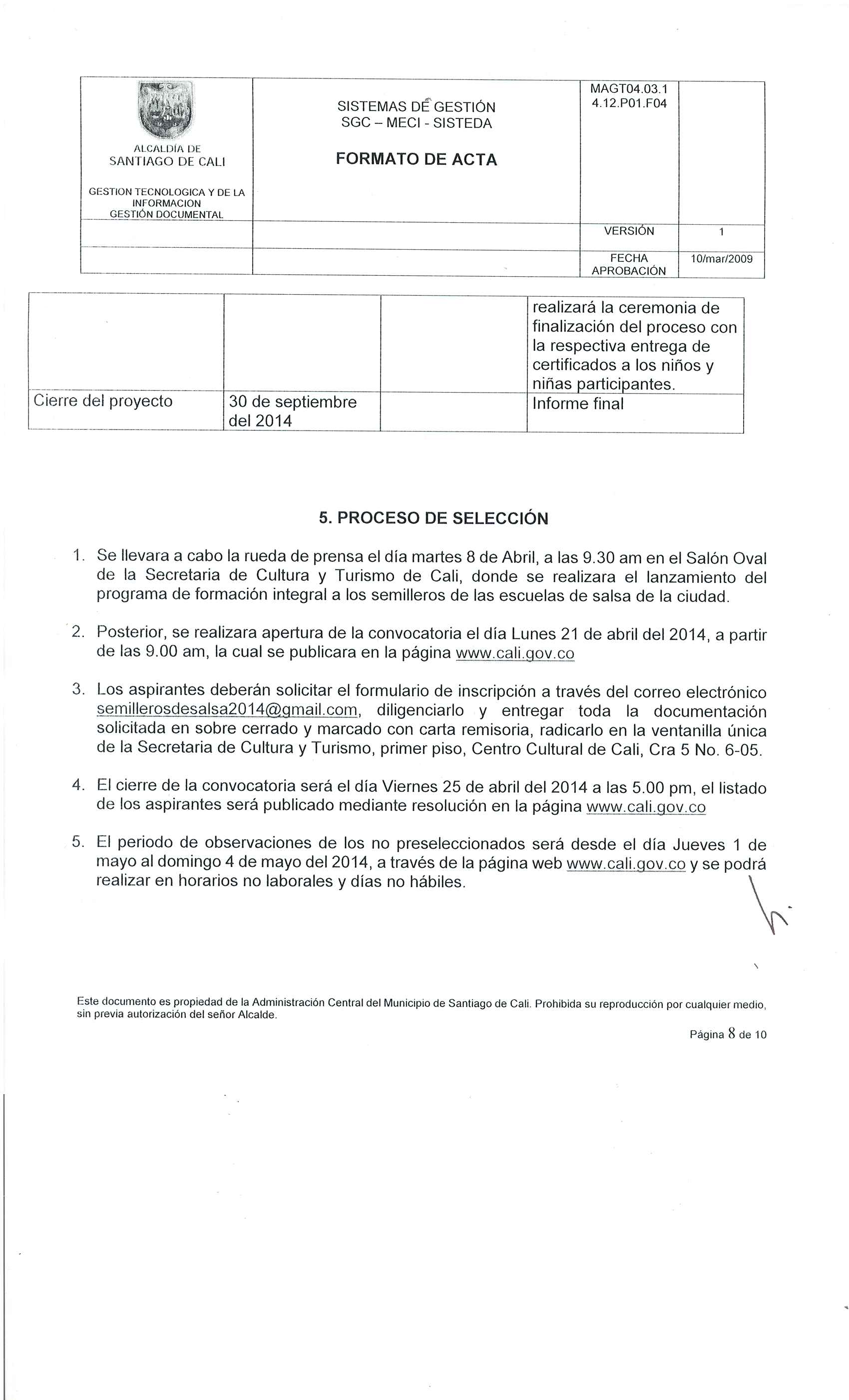 • No haber sido beneficiado por ningún proceso de formación en la Secretaría de Cultura y Turismo de Cali en la vigencia 2013.