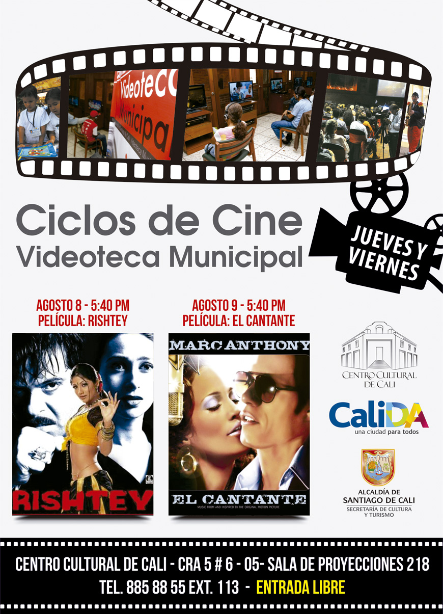 La Secretaría de Cultura y Turismo de Cali, a través de la Videoteca Municipal, presenta durante el mes de agosto, el ciclo de cine musical; los jueves la cita será con los musicales hindúes y los viernes vidas en Do Re Mi. Las películas serán presentadas en la sala de proyecciones 218 del centro cultural de Cali, los días jueves y viernes a las 5:40 PM.