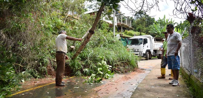 La rápida acción de la Secretaría de Infraestructura y Valorización y los organismos de seguridad de la Alcaldía de Santiago de Cali evitaron que 12 derrumbes y un fuerte vendaval con granizada, hubieran causado una tragedia a los 2.648 habitantes de los corregimientos Felidia y La Leonera.