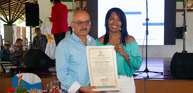 La secretaria de Educación, Luz Elena Azcárate Sinisterra, exaltó a un rector de cada una de las zonas educativas, un coordinador por cada institución, tres docentes de cada institución, un profesional del programa todos a Aprender, además de reconocer al licenciado Rubén Darío Cárdenas de la institución educativa María Auxiliadora del municipio La Cumbre y al rector César Augusto Ocoró Lucumi, por el premio Nutresa, recibido en Bogotá.
