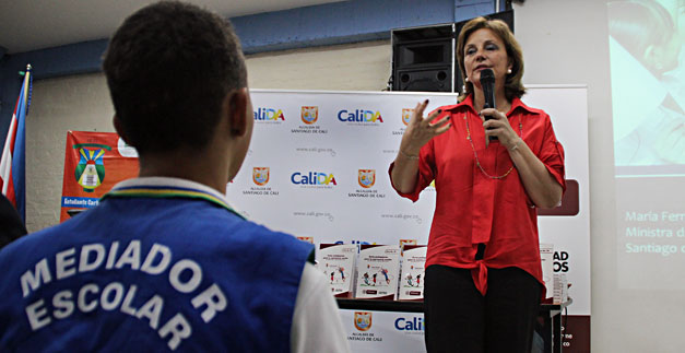 La ministra de Educación, María Fernanda Campo Saavedra, en visita a Cali entregó a los rectores de  las Instituciones Educativas Oficiales una guía pedagógica, herramienta de gran utilidad para ser utilizadas por parte de docentes y estudiantes en la aplicación y ruta de atención de la Ley 1620.
