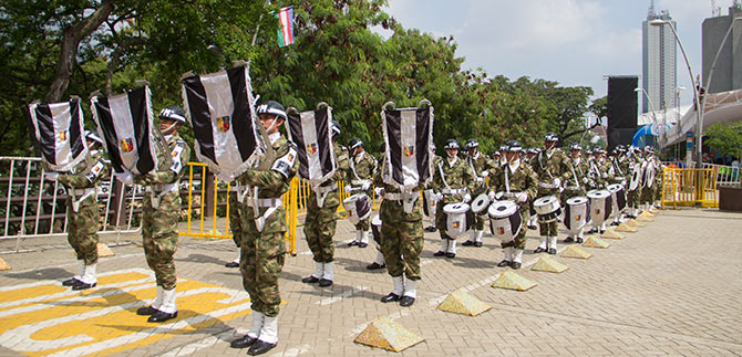 Una nutrida procesión, encabezada por la Banda de Guerra del batallón de la  Policía Militar, que arrancó hacia las 10:30 a.m. de la iglesia La Ermita por todo el Bulevar del río hacia la iglesia de la Merced, dio apertura a la tradicional actividad  “La Misa de Mi Pueblo” este jueves en el centro de Cali.