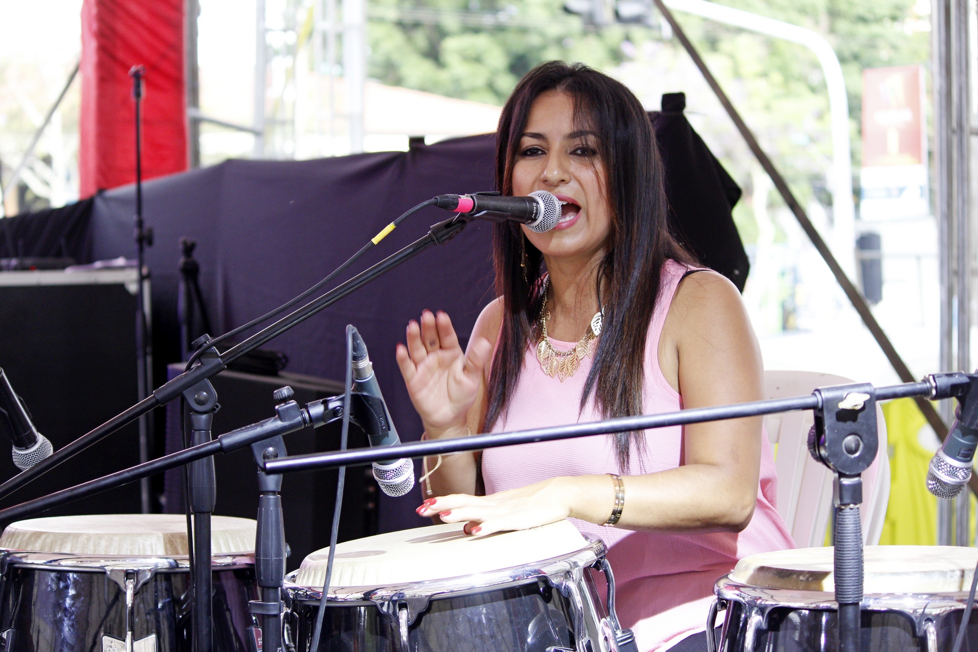 Estuvo como invitada Alexandra Albán, una pastusa que vive en Miami pero que se siente caleña. Una percusionista de mucho reconocimiento y “conguera” de muchos méritos, quien hizo una presentación para los asistentes.