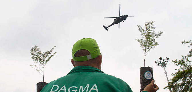 Del cielo cayeron las razones naturales que  más de  1.800  ciudadanos  aportaron para el cuidado  del medio ambiente, las cuales fueron transportadas en un helicóptero de la Fuerza Aérea  hasta  el parque de las Banderas de Cali.
