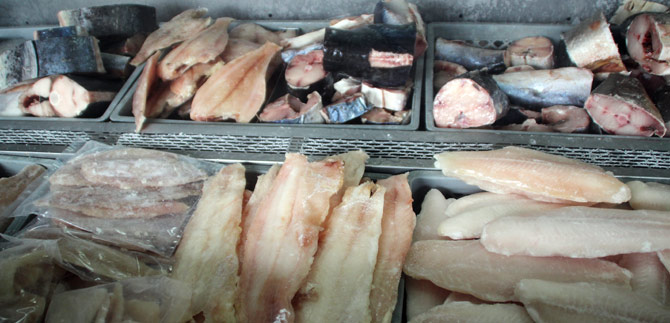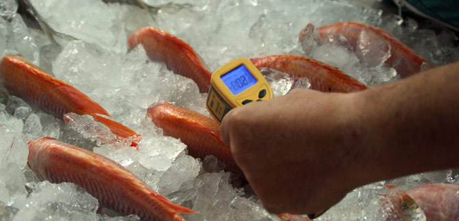 • Cuando vaya a comprar pescado o mariscos, verifique que el producto esté almacenado bajo congelación, no expuesto al sol, y el ambiente; en le pescado la escamas deben estar bien adheridas a la piel, los ojos brillantes y deben ocupar toda la cavidad orbital, la carne debe ser resistente a la presión.