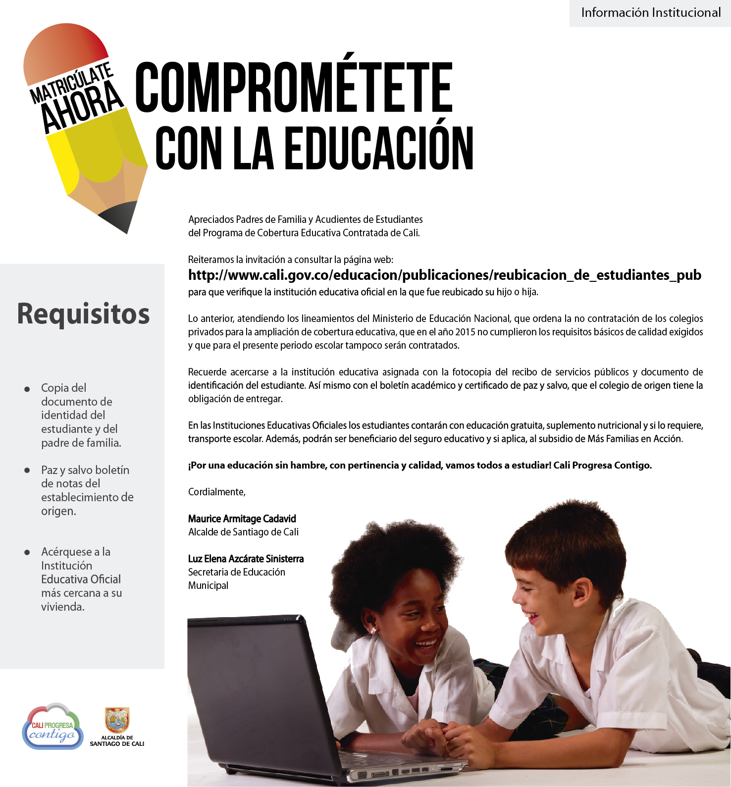 (http://web1.cali.gov.co/educacion/publicaciones/inscripciones_abiertas_en_instituciones_educativas_oficiales_pub) y redes sociales.