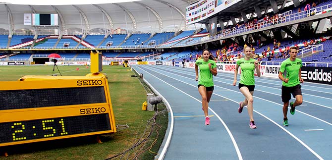 A pocas horas de empezar las pruebas y al ver de cerca los trabajos de adaptación a la pista de los atletas del mundo, el jefe del Ejecutivo caleño manifestó que una vez más el pueblo de la Sucursal del Cielo debe sentirse orgullo y honrado de recibir visitantes de los cinco continentes.