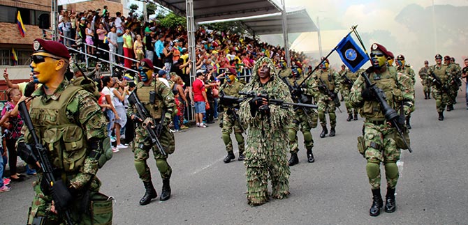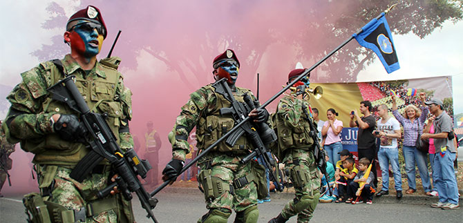 En el desfile de este 20 julio, que denominado Día de la Independencia Nacional, participaron soldados de Infantería, Artillería, Policía Militar, Ingenieros Militares, Unidades de Fuerzas Especiales, Alta Montaña y Combate terrestre. Así como del Gaula del Ejército; el grupo de caninos y los cañones de artillería.