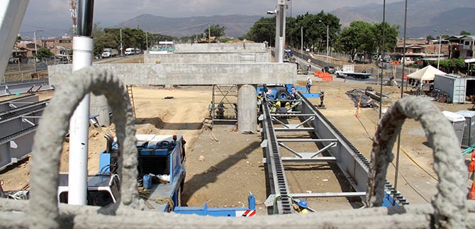 Tres juegos de vigas metálicas inician el izado desde este lunes hasta dentro de cerca de tres semanas, para armar el puente a desnivel que se construye en la intersección de la Avenida ciudad de Cali con carrera 1ª en la salida a Palmira, que se espera entre en funcionamiento el próximo 7 de diciembre.