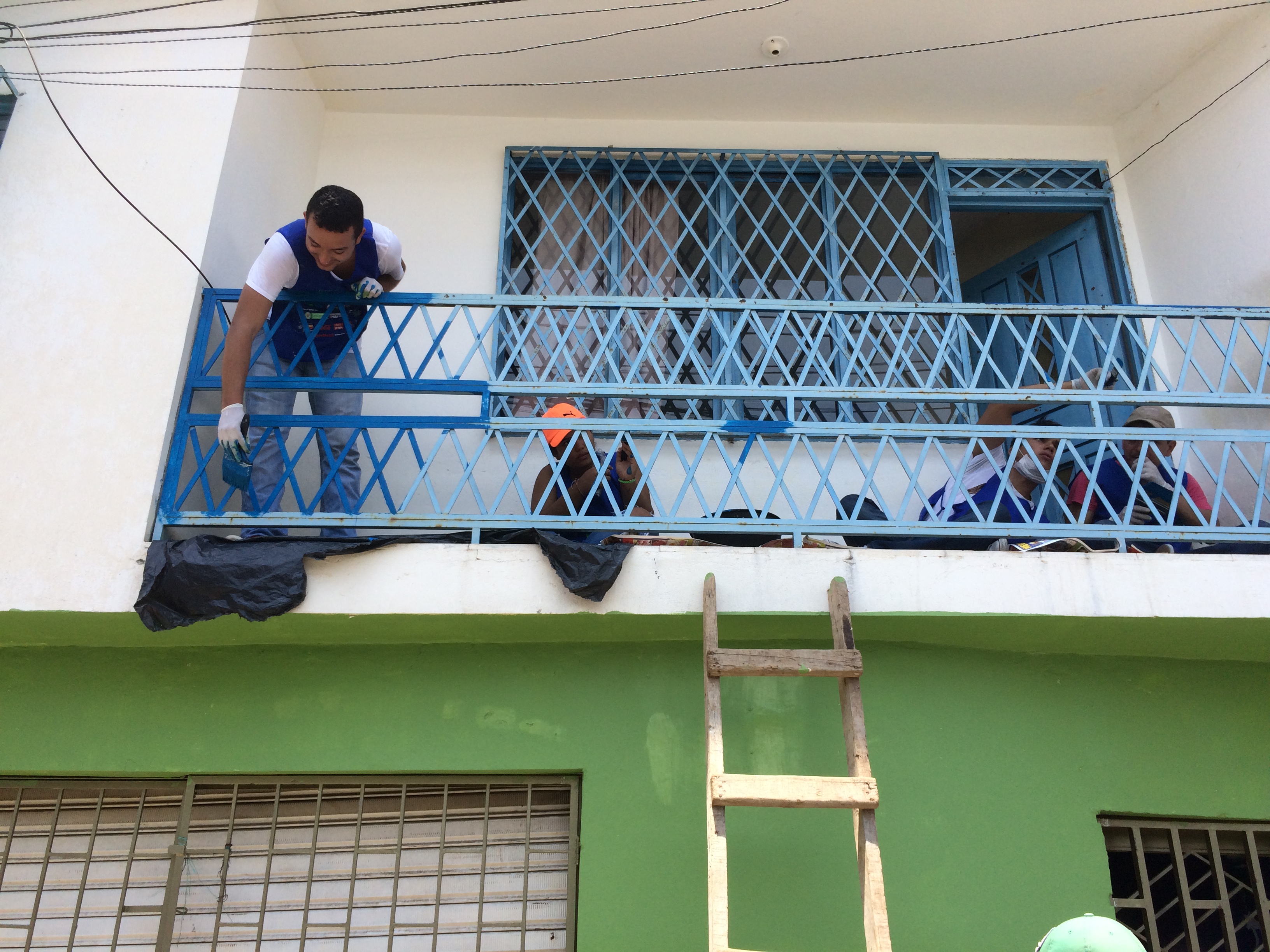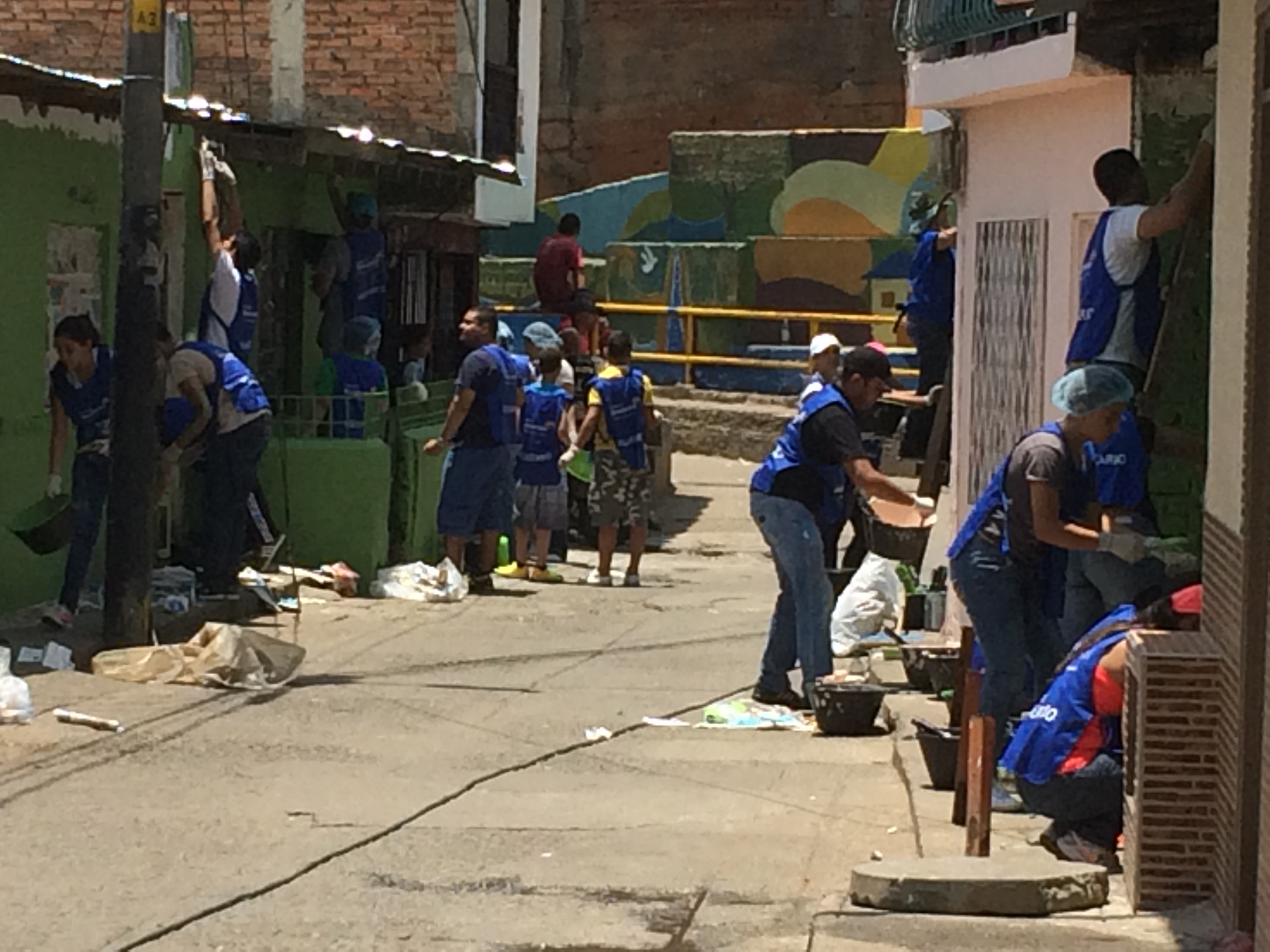 La intervención se materializó así: “Lo que hicimos fue un sondeo con la comunidad para identificar quiénes querían  que se pintara las fachadas de sus casas y con cuáles colores. Luego logramos la articulación con la Fundación Orbis, que pertenece a Pintuco y se encargó de donar la pintura; mientras la  Fundación Bancolombia,  participó con  150 voluntarios para pintar  y facilitó refrigerios y almuerzos”, describió Pérez.