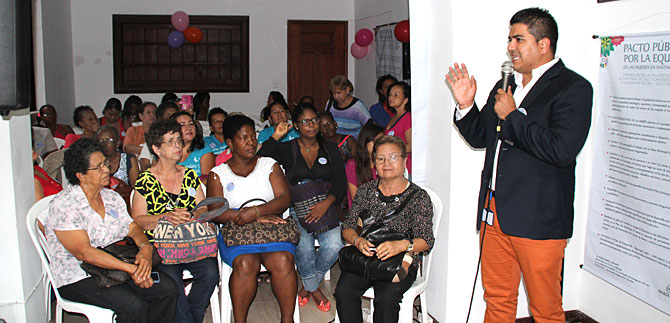 Igualmente, la asesora de Equidad de Género, Liza Rodríguez, expresó su compromiso de continuar trabajando por el bienestar y fortalecimiento de la Mesa; señaló que gracias al esfuerzo de ellas hoy muchas mujeres gozan de una mejor calidad de vida, con respeto, dignidad y participación en espacios públicos y privados, respaldadas en la política pública de la mujer.
