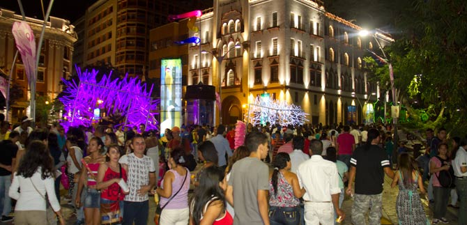Los ‘trinos de colores’ representando en el mapping, cuyo escenario es la torre de la Alcaldía del CAM, a las especies de aves nativas de la región en un espectáculo de color, música y efectos, dejaron maravillados a los miles de asistentes que se congregan cada noche.