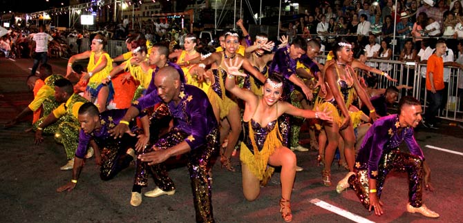 Y llegó el momento de la algarabía cuando la carroza de Emcali con siete expertos bailarines danzaban al son de otro himno de las capital del valle, "las caleñas son como las flores".