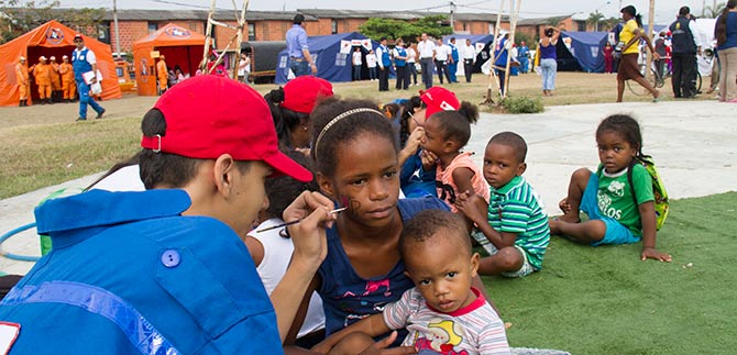 Por su parte, Alfonso Vargas Carrillo, director de socorro de la Cruz Roja Colombiana – seccional Valle del Cauca, explicó que en esta actividad conjunta, organizada y llena de entusiasmo, “se trabajó de la mano con el sector salud. De allí que contamos con grupos de apoyo sicosocial, 52 voluntarios han hecho presencia, con los que se han brindado charlas de prevención sobre el Dengue, Chicunguña y VIH, así como vacunación y recreación para los niños que han llegado. También trajimos cinco abogados de apoyo para atender diferentes problemáticas de la comunidad. Esta es una actividad muy importante, que destaca el trabajo mancomunado, lo cual se seguirá haciendo”.