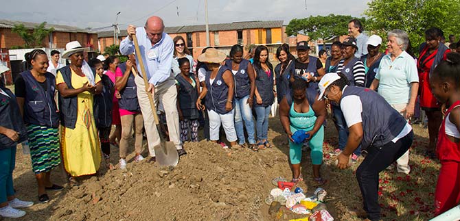 El mandatario de los caleños al empuñar una pala y rodeado de varias cantaoras de este vecindario expresó que “esto es una demostración de que la empresa privada representada esta vez por Fanalca y la Alcaldía unen esfuerzos para brindar mejores oportunidades sociales a las gentes de este sector suroriental de la capital vallecaucana”.