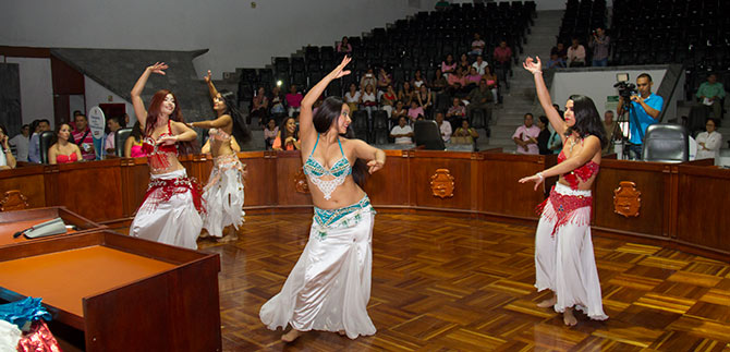 Las danzas del Medio Oriente, cargadas de versatilidad y belleza, fueron las encargadas de cerrar la jornada de la mañana, en la conmemoración del Día Internacional de la Mujer, organizado por la Alcaldía municipal, a través de la Asesoría de Equidad y Género, y otras dependencias de la Administración caleña.