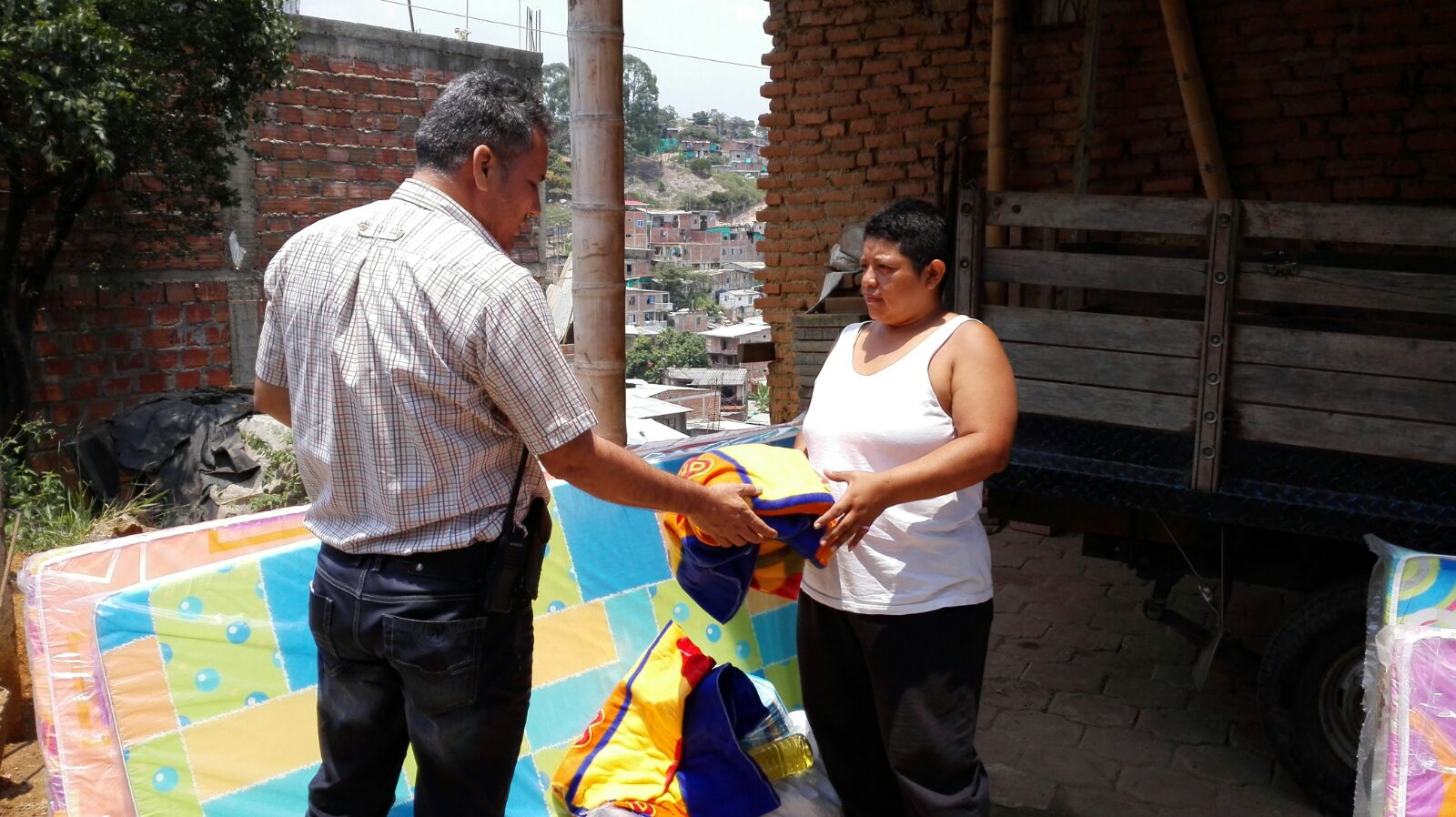 Las entregas consistieron en colchonetas, cobertores, kit de aseo, kit de cocina y un mercado.
