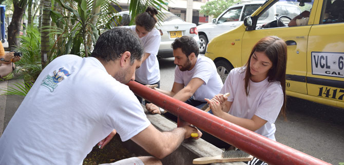 Con el apoyo de más de 20 voluntarios fueron limpiados y pintados los separadores de los andenes de la avenida sexta en la jornada de embellecimiento del espacio público liderada por los integrantes del colectivo "Yo amo mi Cali".