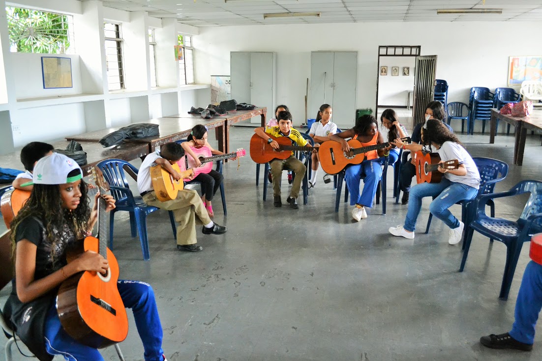 "En la Institución Educativa José Manuel Saavedra Galindo de Cali, continuamos fortaleciendo las prácticas musicales. Niños y jóvenes estudiantes aprovechan mejor su tiempo libre y desarrollan aprendizajes fundamentales para su vida", afirmó Carlos Andrés Gamboa Ruiz, Docente de música de la Institución Educativa quien lidera la formación musical en esta sede.