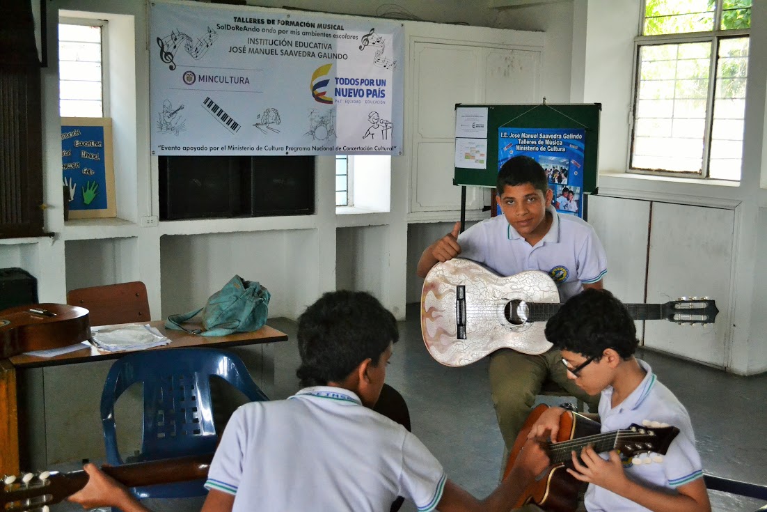 En la búsqueda de conformar la escuela de música de la institución educativa oficial José Manuel Saavedra Galindo, en el barrio Benjamín Herrera, Comuna ocho, docentes del establecimiento como un ejercicio extra curricular, implementan talleres de técnica vocal, canto, instrumentos de percusión, viento (flautas), cuerdas, pianos, teclados electrónicos y prácticas de conjunto, a estudiantes de primaria y bachillerato de dicha sede educativa.