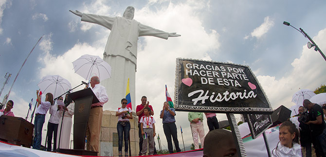 El  emblemático monumento de Cristo Rey fue testigo de  la “gran boda del año” en la capital vallecaucana. En un ejercicio pedagógico y simbólico, los caleños  sellaron su compromiso de trabajar por una ciudad que represente el progreso y la calidez de sus habitantes.