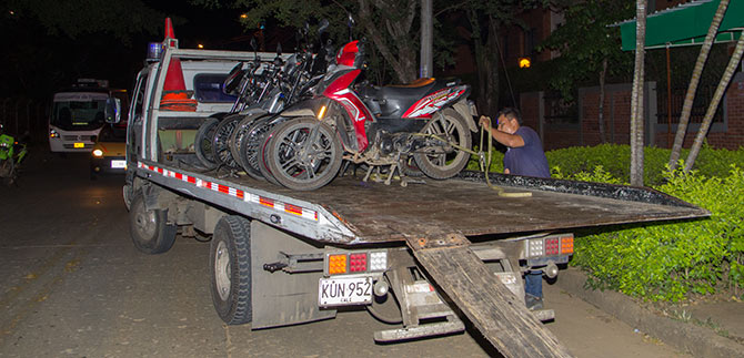 La mayoría de las motos se inmovilizaron  por no tener las condiciones técnico-mecánicas, y los papales al día. Además una de las motocicletas presentaba placa falsa, razón por la cual la policía detuvo a su dueño.