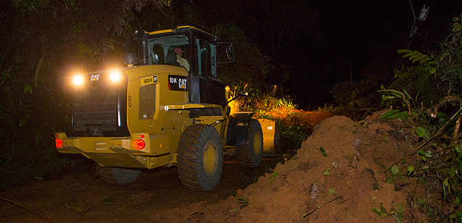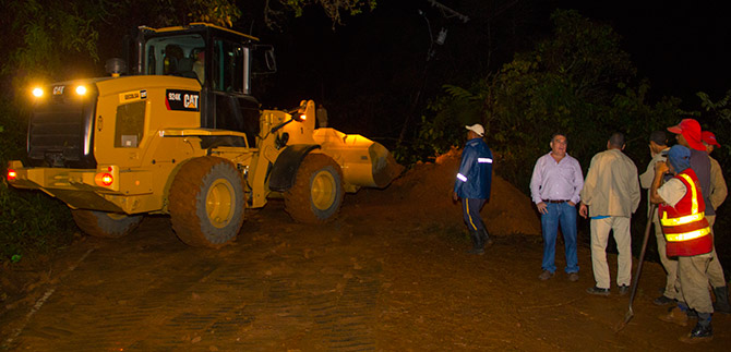 El ingeniero Juan Carlos Orobio, Secretario de Infraestructura, indicó que en la zona afectada en las últimas horas por las persistentes lluvias, fue necesario el desplazamiento de una retroexcavadora, un cargador frontal, cuatro volquetas, dos carro tanques, dos camiones y cuarenta unidades de operarios, equipados de palas y machetes, para ayudar a despejar el terreno.