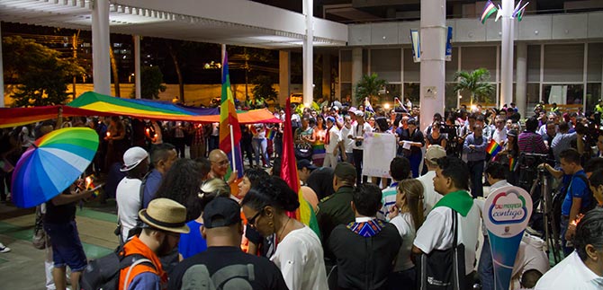 La comunidad Lgtbi se dio cita en la Plazoleta Jairo Varela para rendir homenaje a las víctimas de la masacre de Orlando, rechazar todo episodio de discriminación y actos de homofobia que se dan a nivel nacional y mundial.