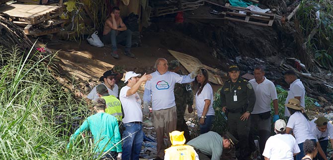 El Alcalde Maurice Armitage, al llegar a la avenida 2 norte con calle 52, entre los barrios Pacará y La Isla, se metió al río, y en compañía de los voluntarios ayudó a recoger los escombros que tiramos al afluente; hasta un colchón fue encontrado en el río que surte de agua al 20 % de la ciudad.