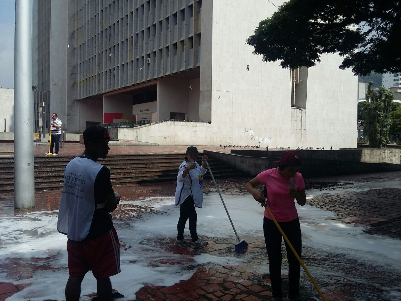 Durante la jornada que se realizó en inmediaciones del CAM, donde también participaron miembros de la iglesia Jesucristo de los Santos de los Últimos Días, se hicieron labores de recolección de basura, limpieza de la retreta, lavado de las bancas ubicadas en el Paseo Bolívar y de la plazoleta.