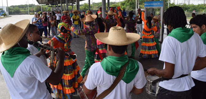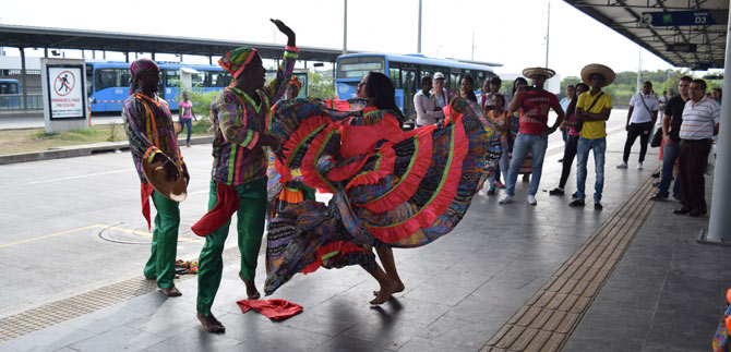 Los usuarios del Sistema Integrado de Transporte Masivo que se movilizaban por la Estación de Andrés Sanín, fueron recibidos con una muestra del folclor del litoral Pacífico, en la antesala del XXII Encuentro Nacional e Internacional de Danzas Folclóricas ‘Mercedes Montaño’, organizado por la Secretaría de Cultura y Turismo de Cali.