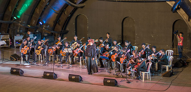Carmen González, directora del Teatro al Aire Libre los Cristales, destacó que gracias al apoyo de la Secretaría de Cultura, Cali recibió a estos músicos de cuerda, quienes con un ensamble de guitarras tocaron lo más representativo de los aires y géneros de sus países.