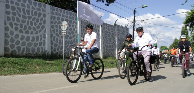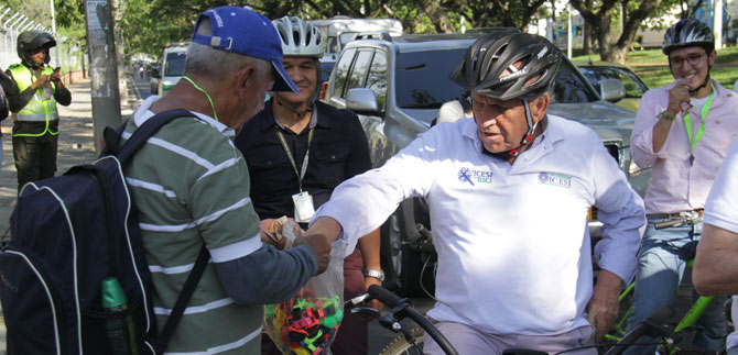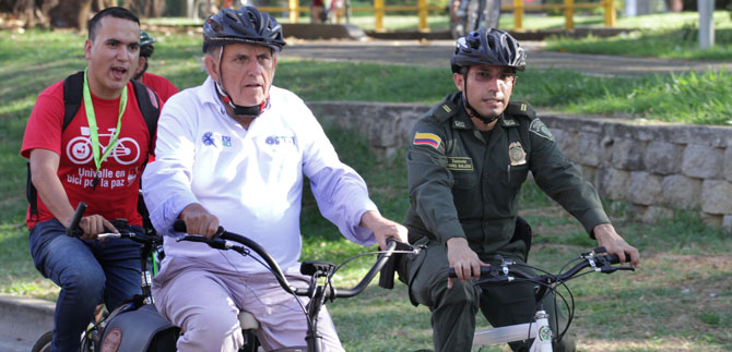 La vía fue colmada por los estudiantes desde la Universidad Icesi, quienes pedalearon por toda la avenida Cañas Gordas, calle 5ª hasta el parque de las banderas. Este desfile por la paz fue encabezado por el Alcalde de Cali, Maurice Armitage, quien en su caballito de acero le siguió el ritmo a los muchachos e hizo el llamado para que cada vez se use más este medio amigable con el medio ambiente, “antes de terminar el año, vamos a terminar 50 kilómetros de ciclorrutas y esperamos en este gobierno terminar con 200 kilómetros para facilitar la movilidad”.