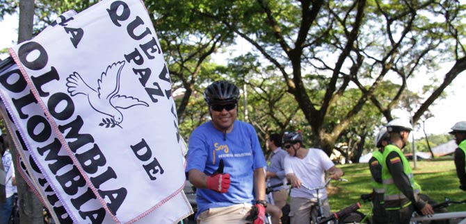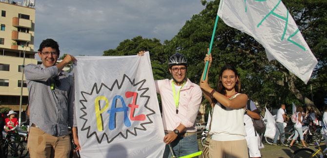 Estudiantes de las Universidades Icesi, Javeriana, Autónoma, Univalle, Santiago de Cali y Libre se montaron a la bicicleta con un solo objetivo: mostrar a la ciudad que son los jóvenes  quienes están asumiendo con responsabilidad el momento histórico que está viviendo el país. ”Pues la paz no es solamente la firma, sino que la paz hay que construirla”, así lo aseguró Diana Paola Salazar Arana, estudiante de Ciencia Política de la Universidad Icesi, que los estudiantes decidieron trascender las aulas y los campus universitarios y tomarse la calle para que las personas sepan que los estudiantes universitarios se están uniendo para tomar con responsabilidad el proceso.