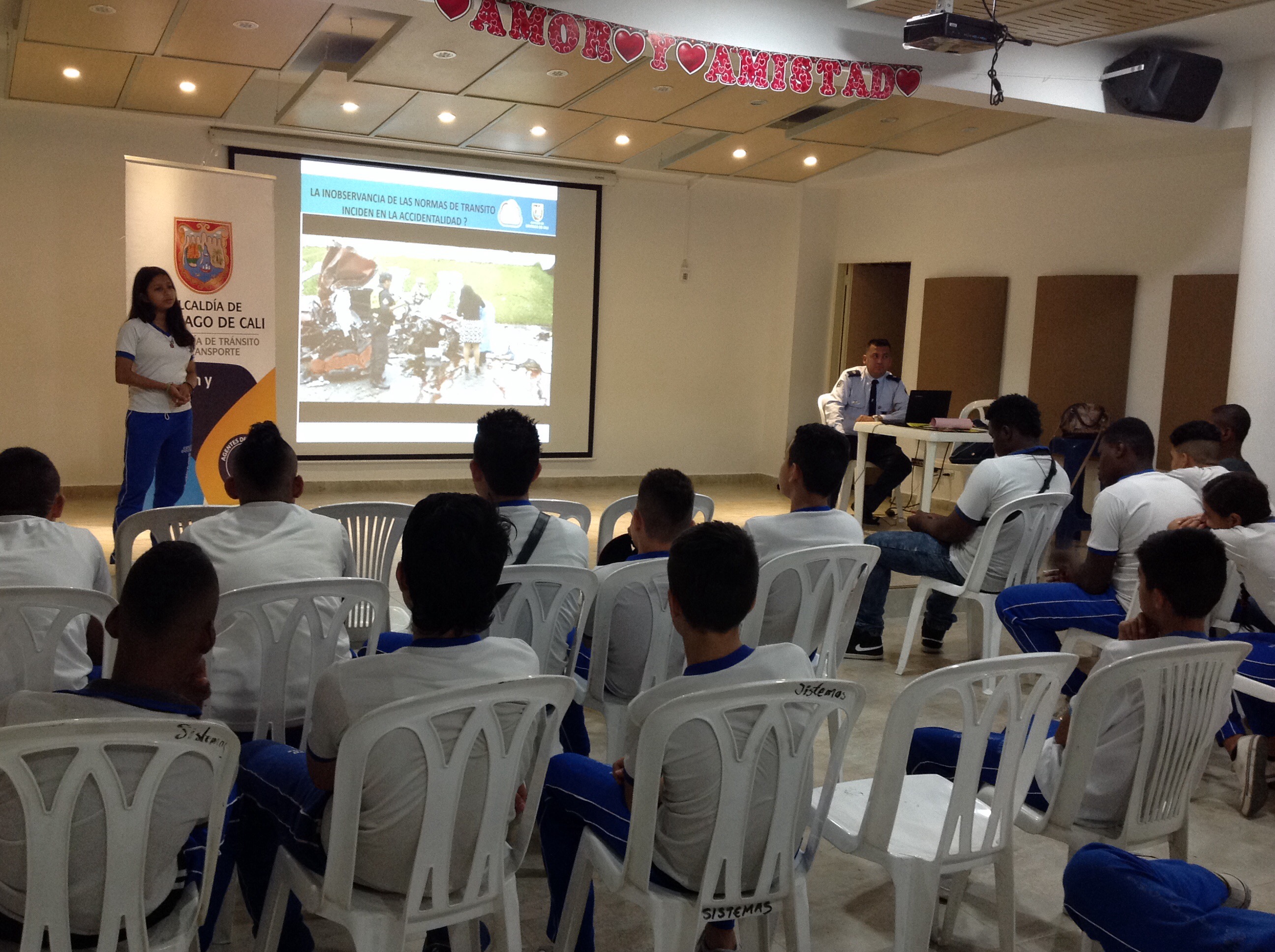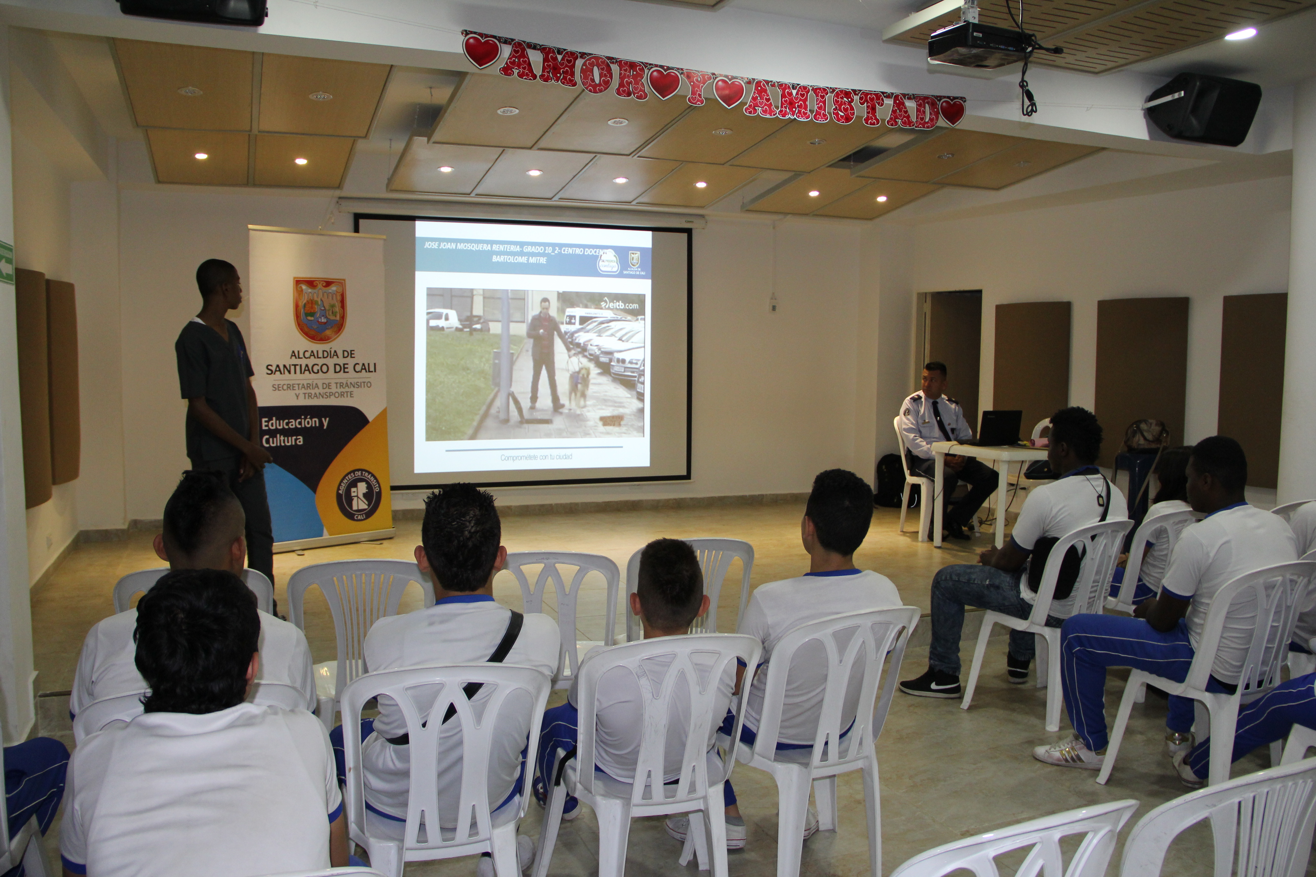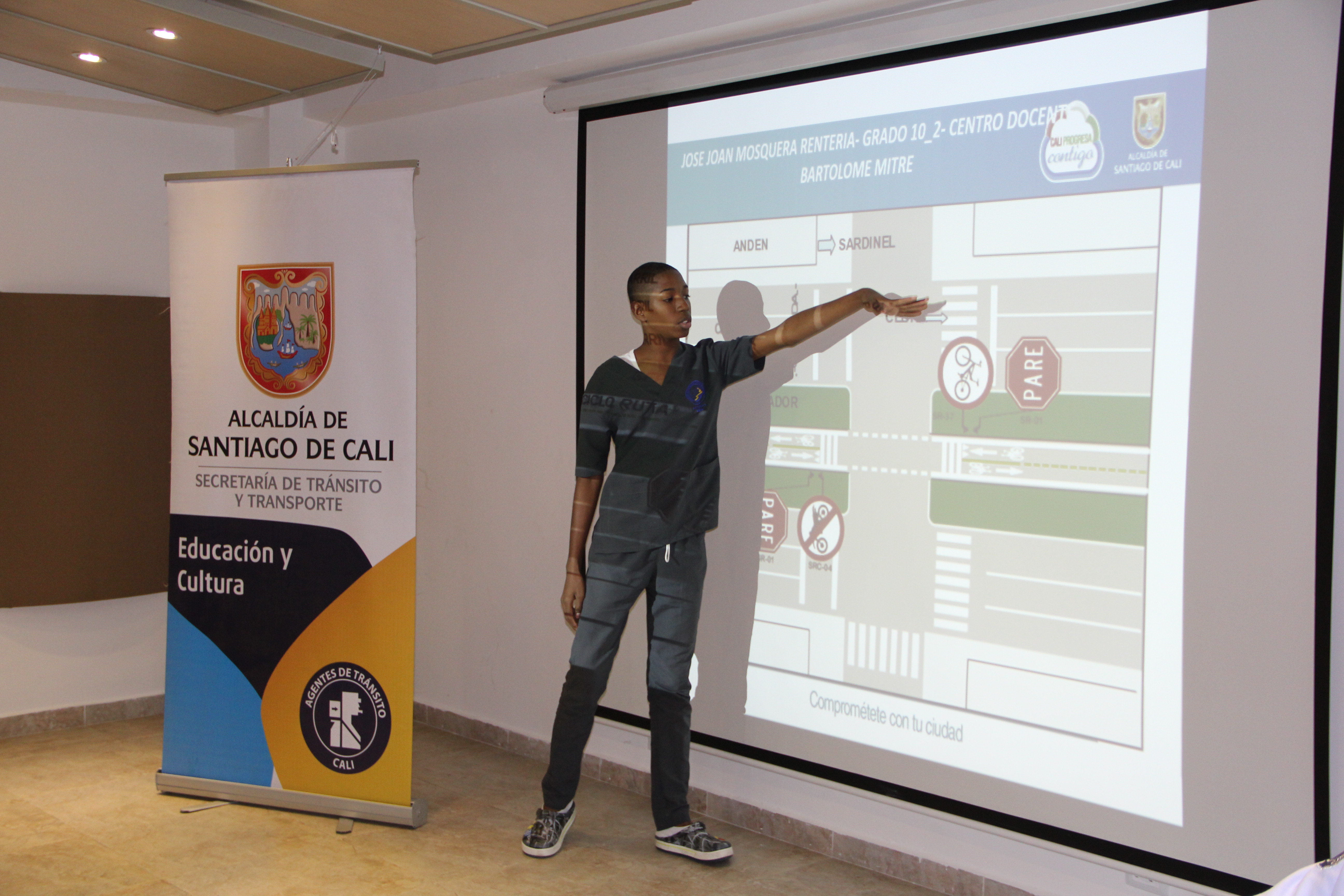 Con el objetivo de sensibilizar a la comunidad estudiantil de la institución Bartolomé Mitre, ubicada en la comuna 13, la Secretaría de Tránsito y Transporte de Cali realizó una capacitación sobre normas de tránsito, tipos de señales, buenas conductas en la vía y prevención de accidentes.