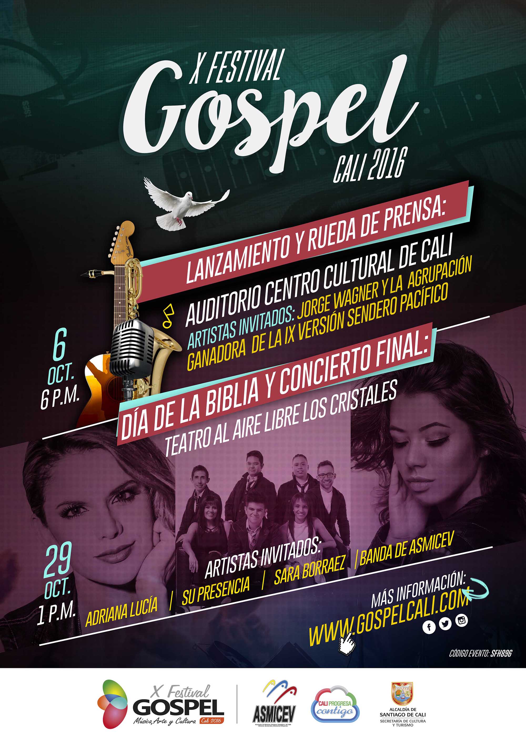 Adriana Lucía, la reconocida cantante colombiana, será una de las artistas invitadas al concierto de cierre del X Festival Góspel, acompañada de artistas de la talla de Sara Borraez y las bandas ‘Su Presencia’ y ‘Asmicev’. El certamen organizado por la Secretaría de Cultura y Turismo de Cali, coincide con la celebración del Día de la Biblia.