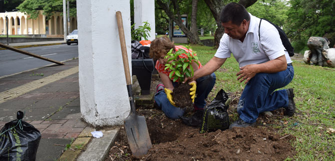 Los funcionarios del Dagma liderados por su director Luis Devía Rodríguez, explicaron el paso a paso para sembrar las plantas, esta vez la copa de oro, que al crecer se enredaran en las pérgolas, creando un cerco vivo que además de embellecerlo lo  oxigenará.