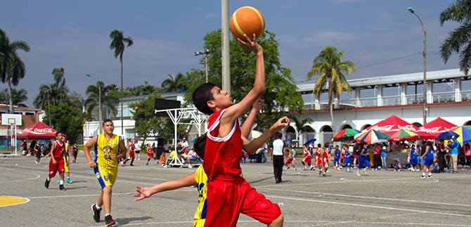 El profe Jaminson Moreno viajó desde Quibdó por tierra con sus 21 chicos. Fueron 10 horas de viaje, con uno que otro mareo que pasó a la historia apenas llegaron a Cali; que no importó más cuando sin pensarlo dos veces, se gozaron una y otra vez la piscina de olas del Parque de la Caña. Son uno de los equipos que más veces ha participado en el festival de mini baloncesto, que ya alcanza su décima versión. “Los niños están súper felices y entusiasmados. En nuestra tierra tenemos un solo coliseo bajo techo. No hay otro sitio donde entrenar bien. A ellos les ha llamado mucho la atención ver tantos y distintos escenarios deportivos en tan buenas condiciones”, resalta Moreno.