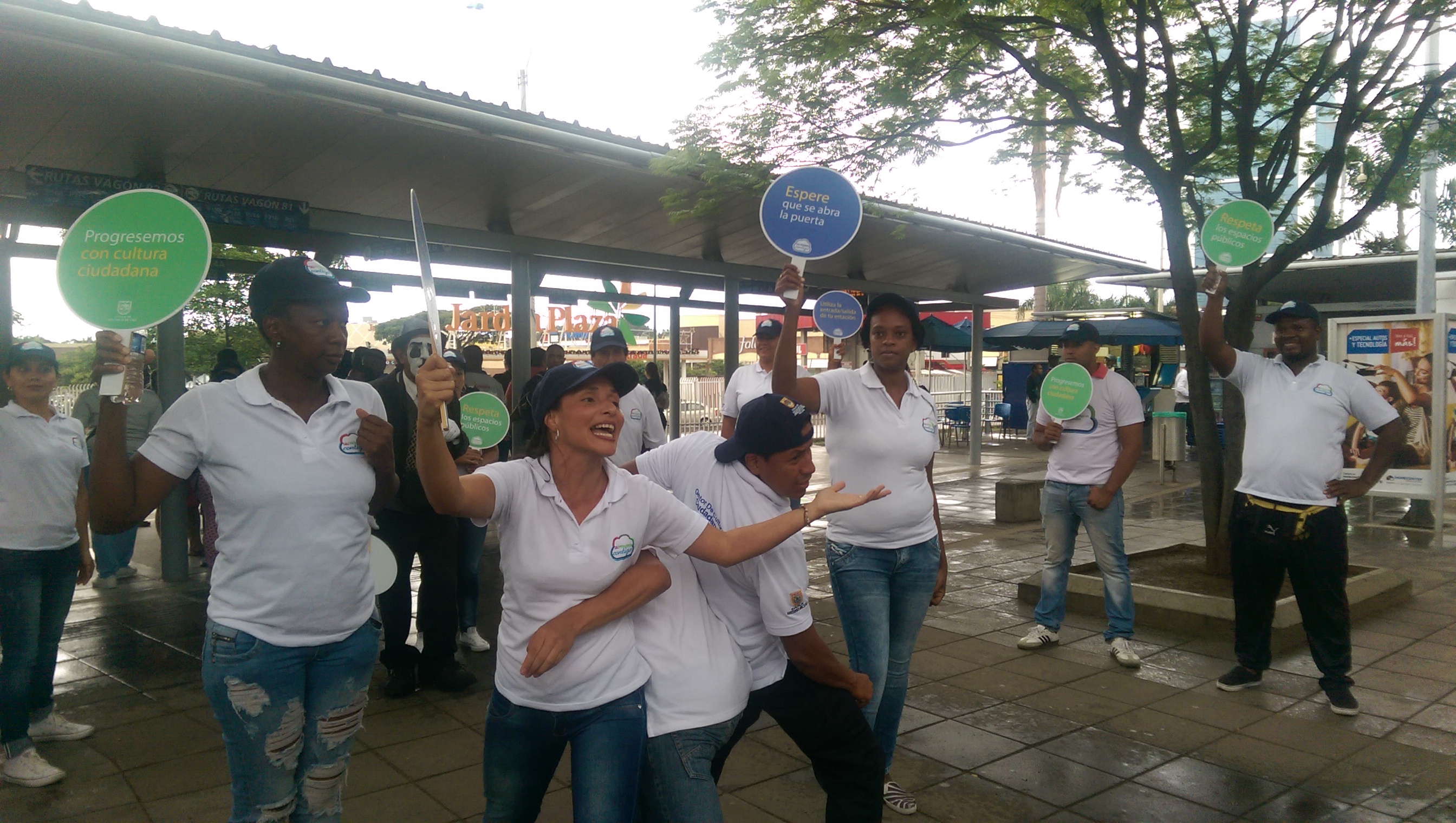A través del arte, los Gestores de Cultura Ciudadana transmitieron el mensaje de hacer la fila, ceder la silla, entrar y salir de los buses conservando la derecha, entre otros, orientados a mejorar comportamientos en el sistema de transporte de los caleños.