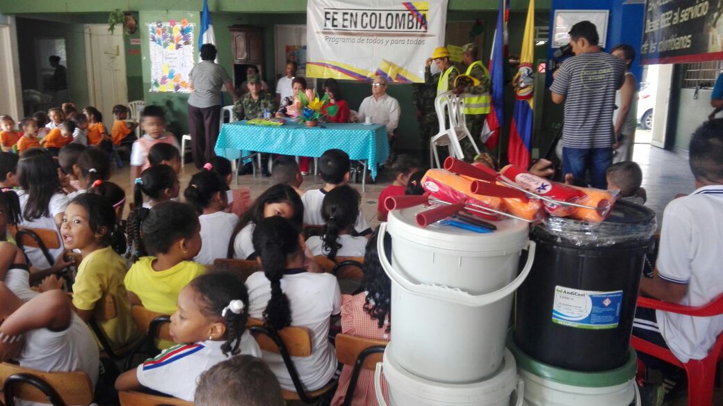 La pintura y los rodillos donados, fueron entregados a la sede educativa adscrita en la Institución Carlos Holguín Lloreda para iniciar con la restauración de paredes, puertas y ventanas.