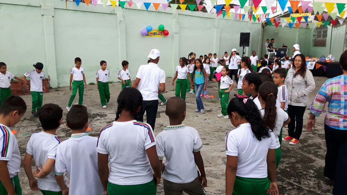 La cita recreativa convoca a los estudiantes de la educación básica primaria, en sus respectivos uniformes de Educación física, para que se diviertan en una jornada de recreación por tres horas, que se desarrolla en diez estaciones de juegos tradicionales como los encostalados, las carreras, el pañuelo, entre otros, terminando la actividad con un refrigerio y ceremonia de reconocimiento a todos los participantes.
