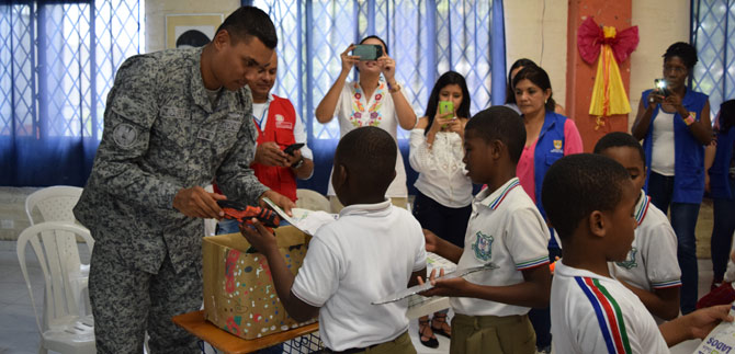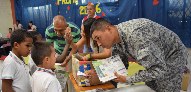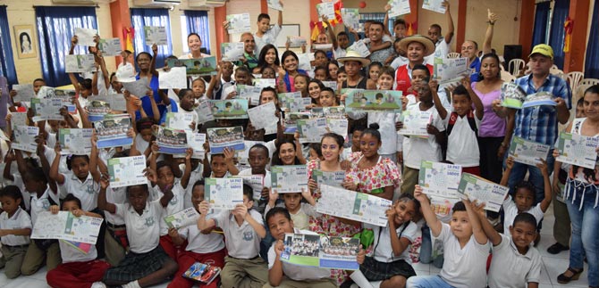 El auditorio: 300 estudiantes de primaria de la Institución Educativa Tecnológica Desepaz, ubicada en la Comuna 21 de Cali. Todos ellos recibieron el ejemplar a cambio de comprometerse con ser multiplicadores de paz y de desarmarse de acciones o pensamientos que no aporten a ello.