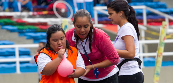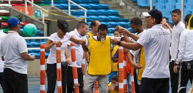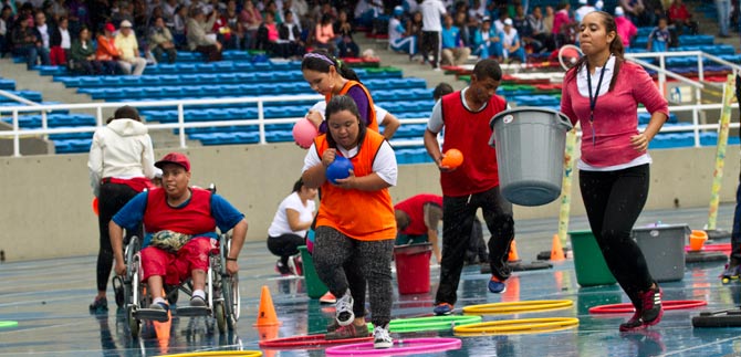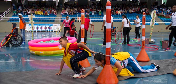 Pruebas de arrastre, de fuerza, de encestar balones y aros, fueron parte de las pruebas que superaron jóvenes y adultos en situación de discapacidad durante el acto de clausura del programa Calintegra, liderado por la Secretaría del Deporte y Recreación Municipal.