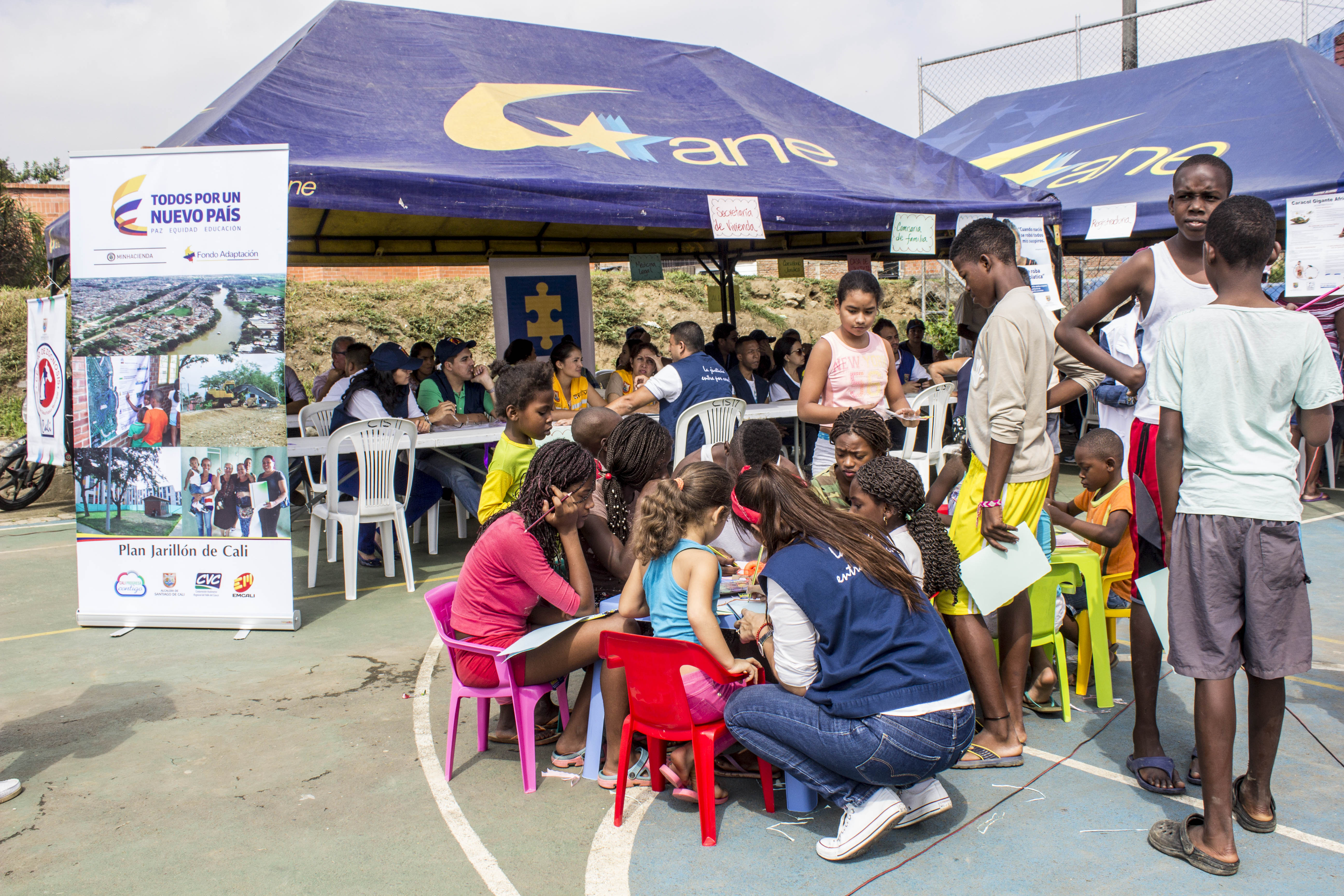 El Plan Jarillón de Cali lideró una feria de servicios en el asentamiento Puerto Nuevo el pasado 6 de diciembre de 2016, con el objetivo de brindar información, orientación y facilitar el acceso de los habitantes de esta población que yace sobre el dique que protege a la capital del Valle de una inundación del río Cauca, a los programas que ofrece la Alcaldía Municipal de Santiago de Cali.