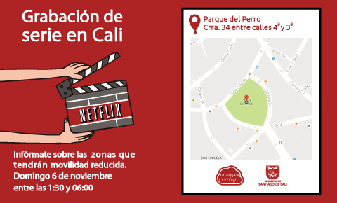 La Alcaldía de Cali, a través de las secretarías de Gobierno y Tránsito, ha dispuesto los operativos necesarios para disminuir al máximo el impacto que tendrán las zonas donde Netflix estará filmando la serie. Para tal fin compartimos el cronograma del rodaje y los mapas de las zonas que tendrán movilidad reducida.