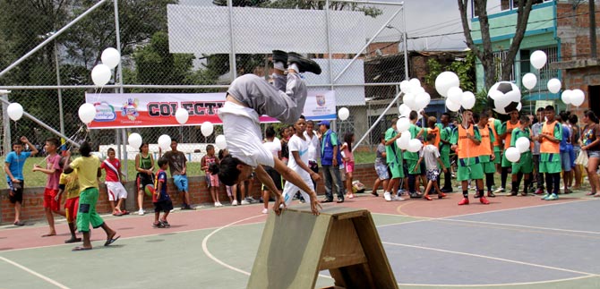 En la actividad del sábado se pudo evidenciar el fruto de este trabajo, donde los jóvenes demostraron sus capacidades en actividades como: colombiao , presentaciones artísticas y la elaboración de un mural que busca eliminar la estigmatización que se tiene hacia la población de la zona.