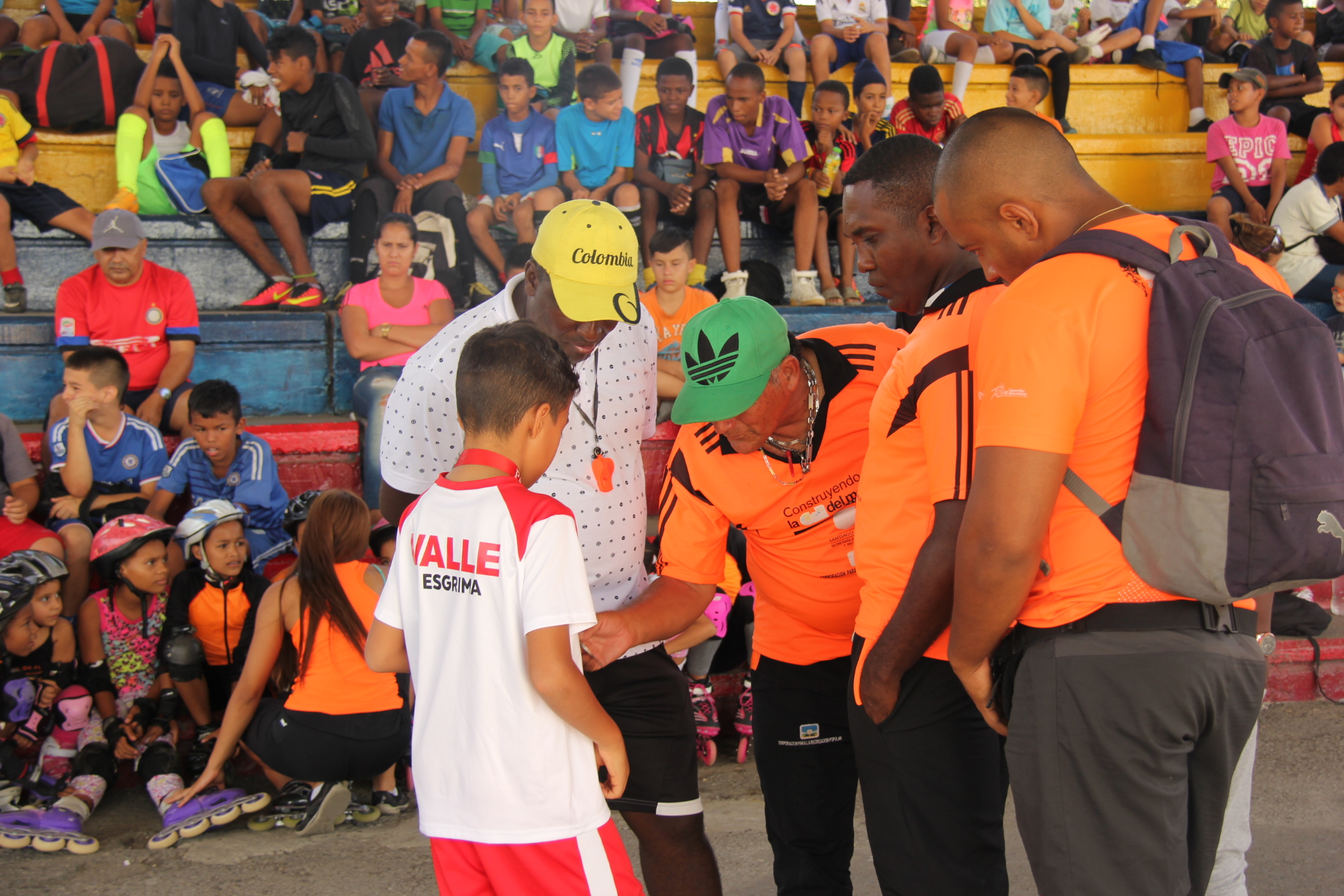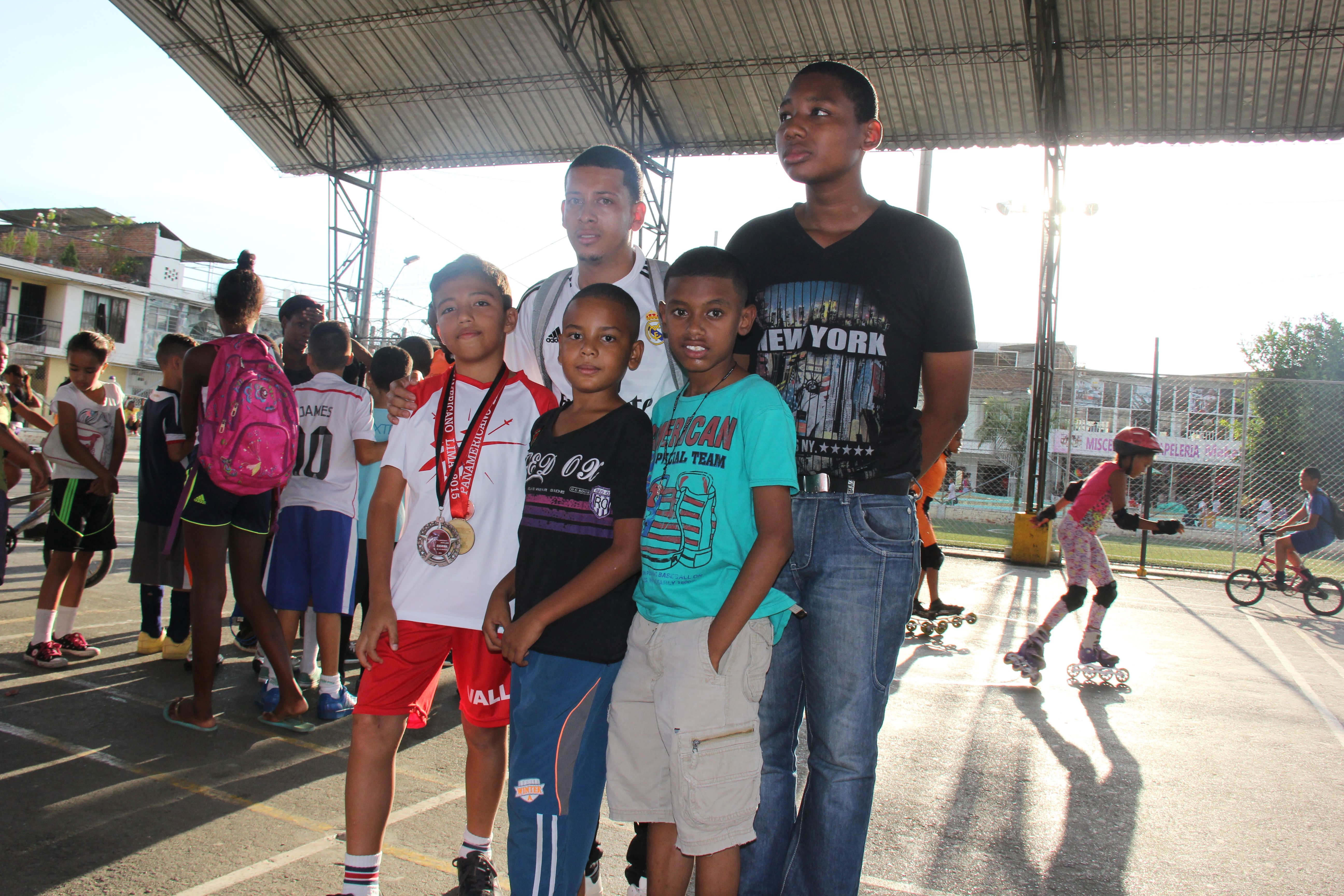 El sitio de encuentro en la Comuna 7 fue El Coliseo Libardo Madrid. Muy puntual y luciendo sus medallas de oro, plata y bronce, ingresó  el esgrimista Isaac Camayo con su rostro iluminado de felicidad y de sorpresa por todas las miradas  y aplausos de los niños que llegan diariamente a sus prácticas de patinaje, fútbol, ajedrez y natación entre otros.