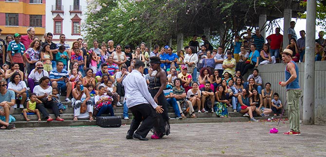 El escritor, poeta y periodista, Manuel Tiberio Bermúdez, destacó cómo gradualmente la gente se olvidó de la carrera cotidiana, se acomodó en el lugar de su preferencia y se entregó a ver una obra que de paso era gratis y que sirvió de remate para un domingo caluroso, en el inicio al Quinto Festival de Teatro Popular Vivo Callejero en Cali.