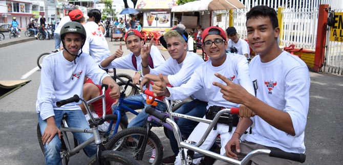 Del Barrio San Cayetano, Rafael Gómez de 15 años, señala como desde que se inició en esta práctica ha logrado hacer más amigos, que se reúnen para participar de las competencias y entrenamientos. El, como el resto de sus compañeros, hacen parte del Club Bulls Riders – BMX, liderado por Andrés Castaño, que reúne en la actualidad a más de 40 practicantes de las distintas comunas y algunos corregimientos.